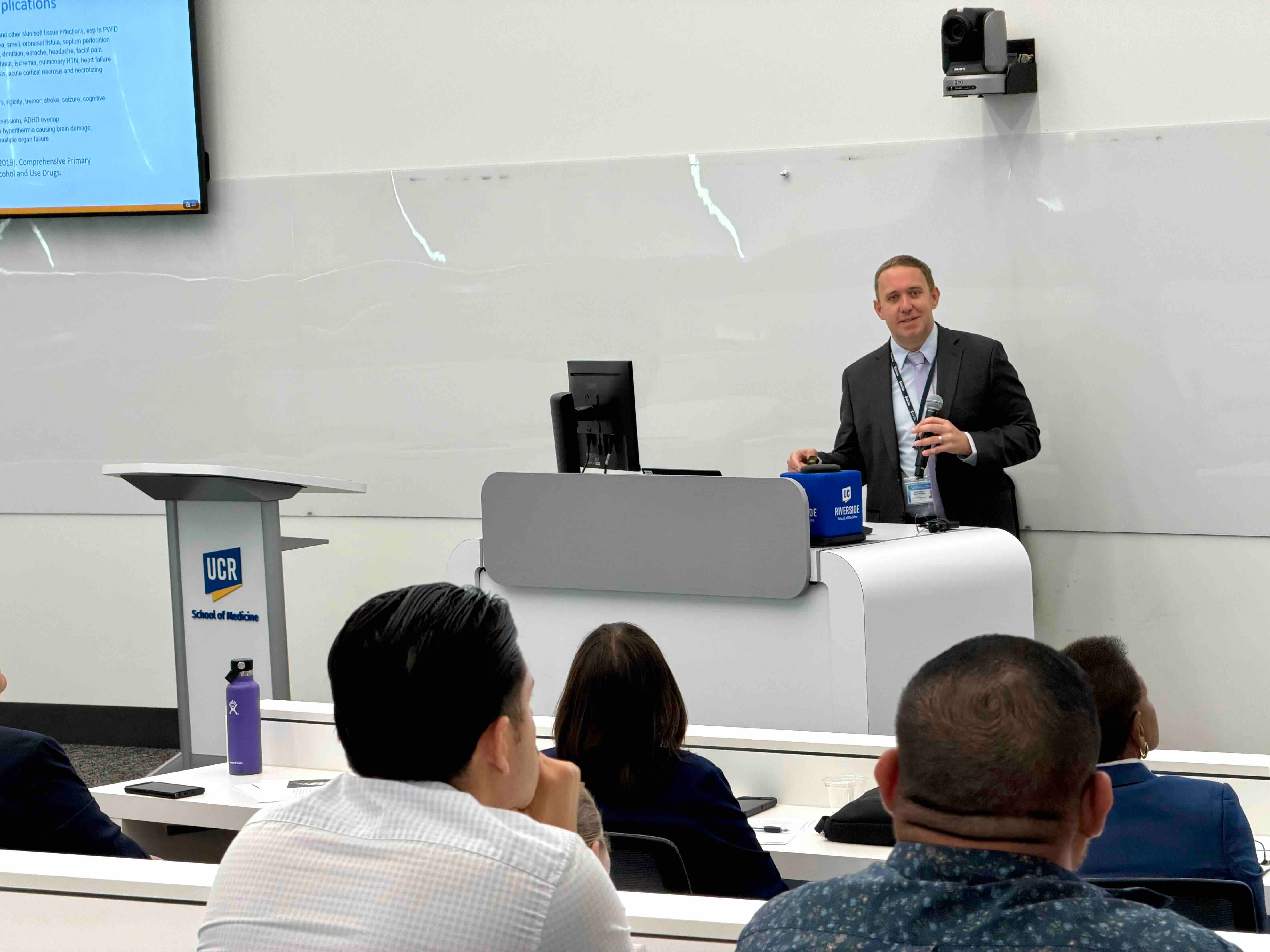 Summit attendee Mario Navarro, a physician assistant at the Riverside street medicine provider Healthcare in Action, said he appreciated Hurley’s address. “That was super fascinating, just to hear or see the data behind contingency management, and that coupled with medications,” Navarro said. He came to the summit to learn about effective approaches and interventions for his work in the field. “I'm going to be heavily involved with addiction medicine treatment, and so just getting the bird's eye view of what my options are was eye opening,” he said.